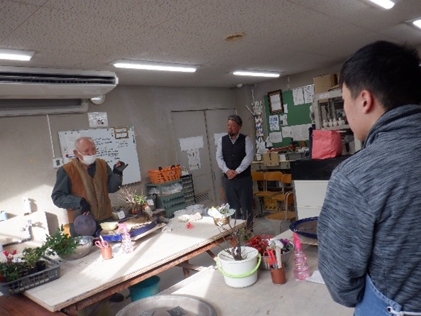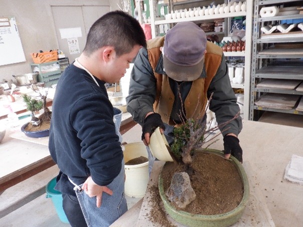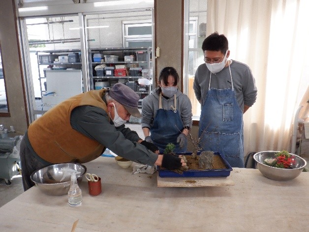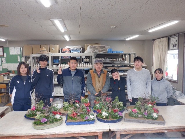 寄せ植えを作りました。どこに梅の木を植えようか、どこに石を置こうか、悩みながらも楽しく作っていました。
